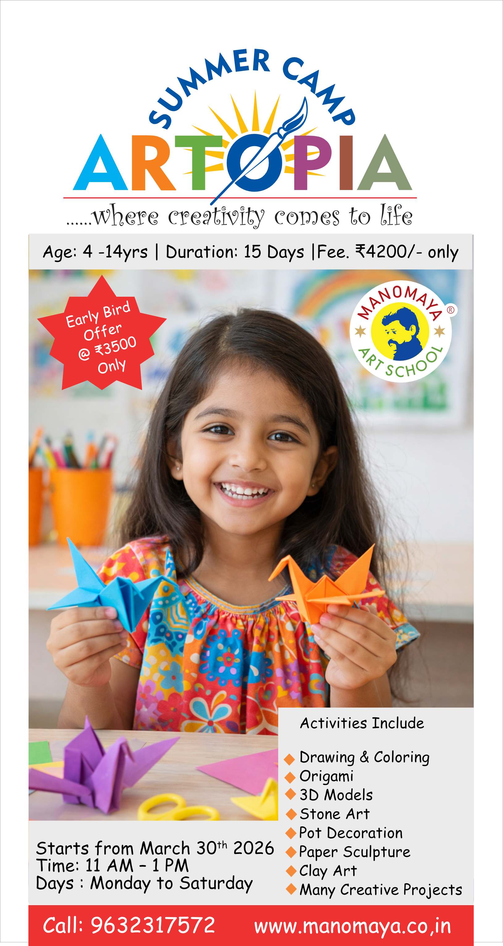 Starts from 30th March to April 2026 15 days Creative camp