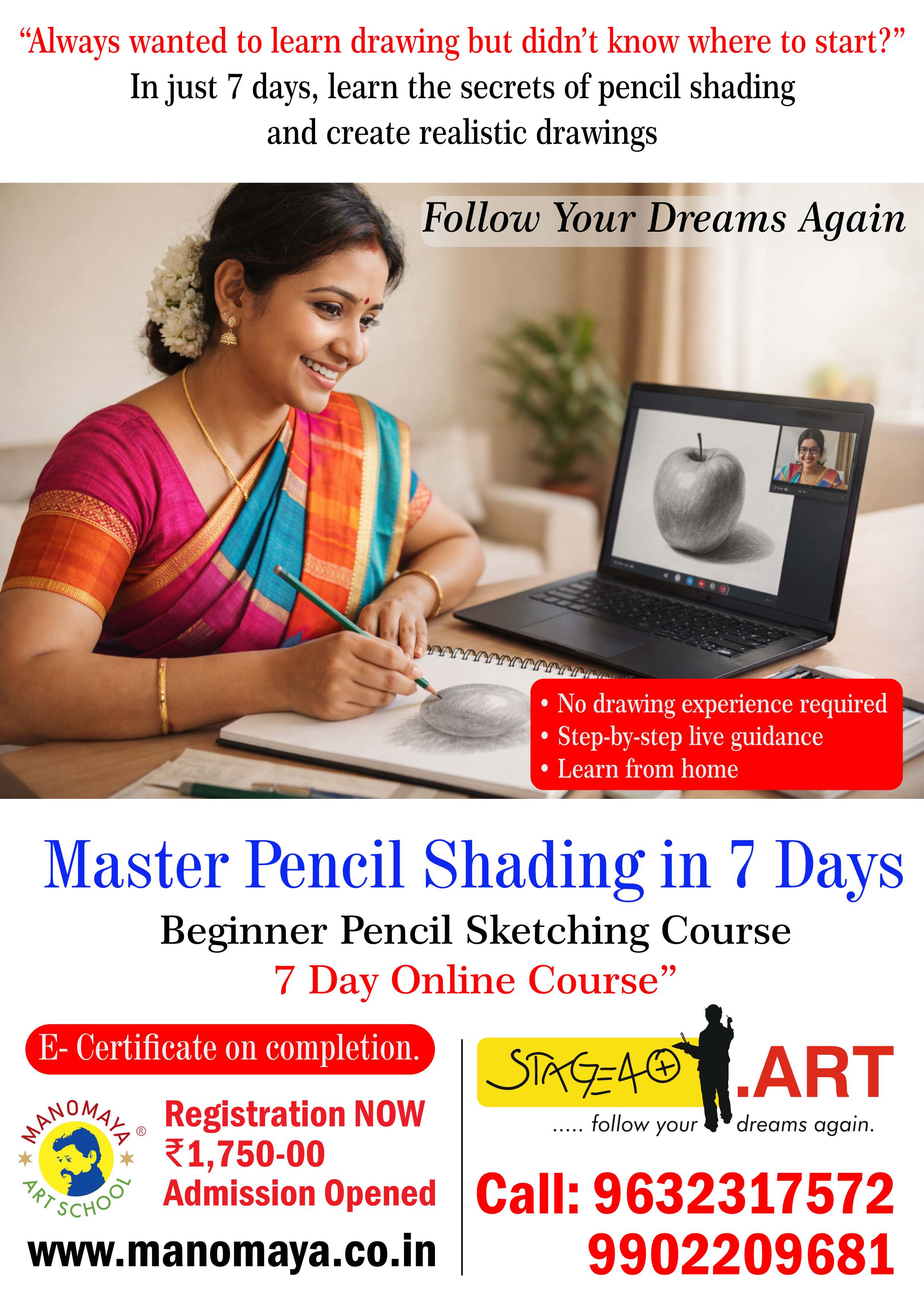 Manomaya Online Art School offers live guided art classes for children above 10 years and adults.