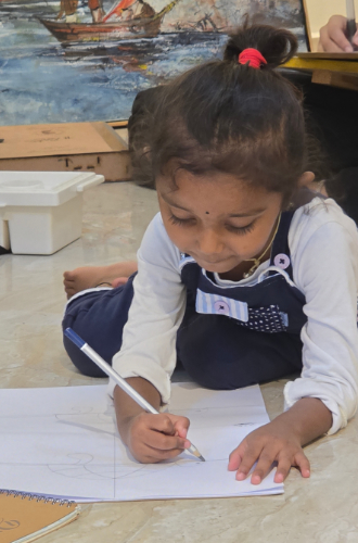 At Manomaya©, we don’t teach children how to draw, we teach them how to see. We don’t just focus on strokes and shades, we focus on creative ideas, and the silent expression that every child holds within. Through structured techniques and free-flowing creativity, we help young minds build not just their skills, but also their voice.